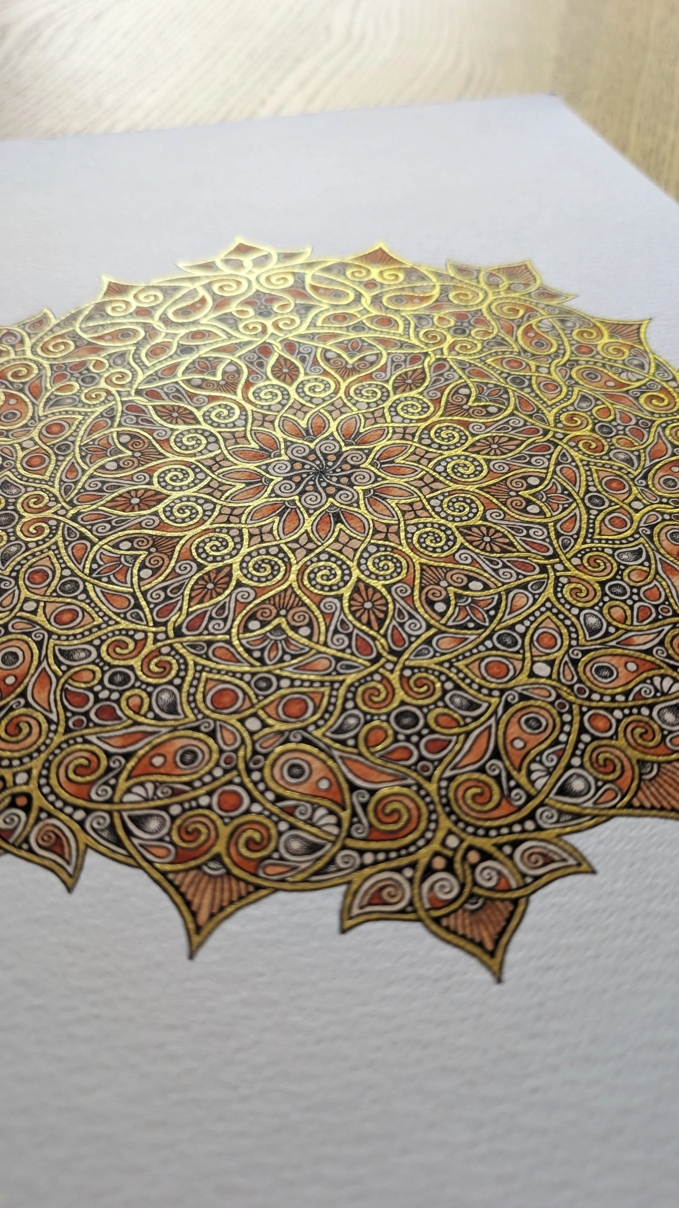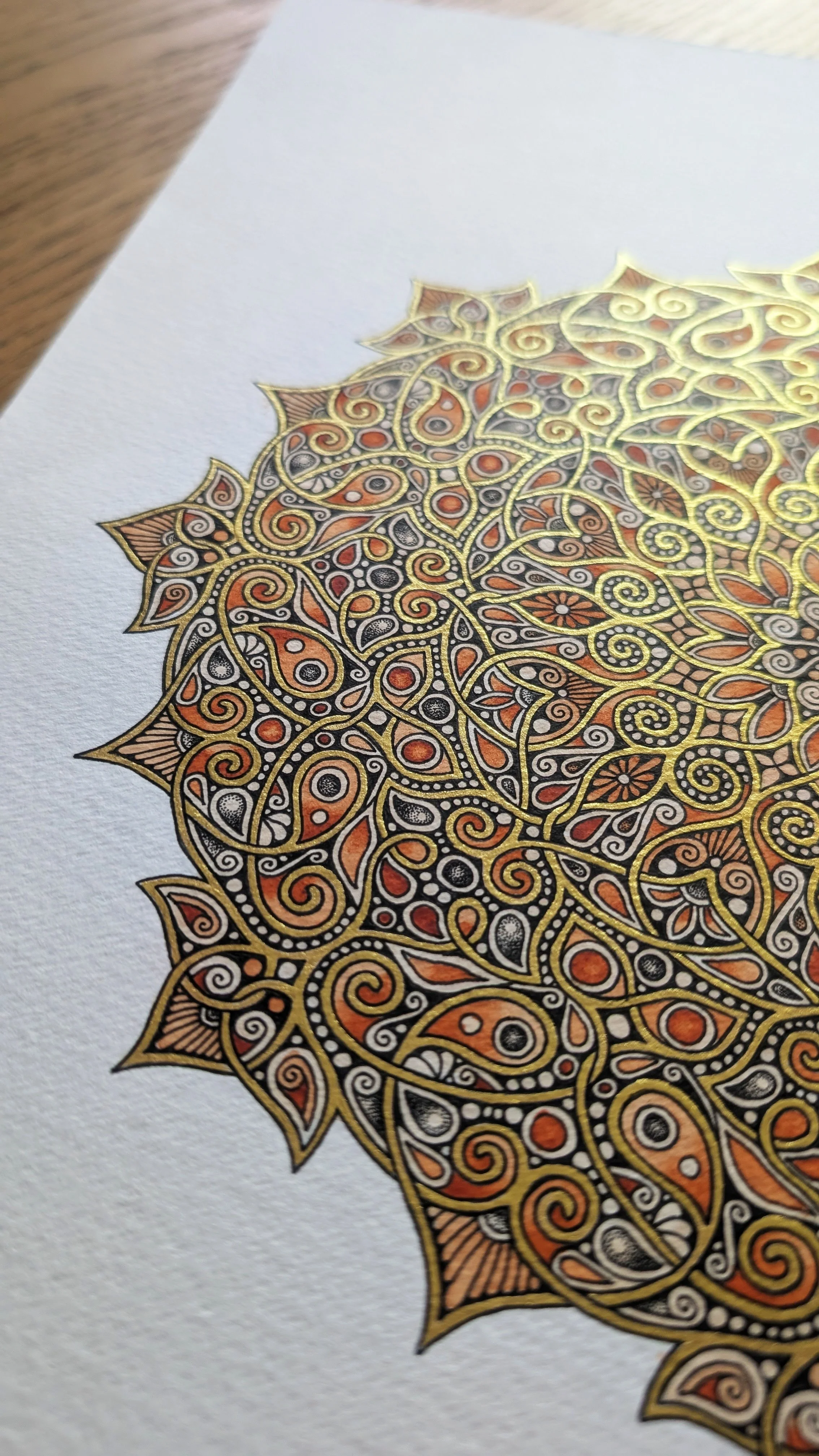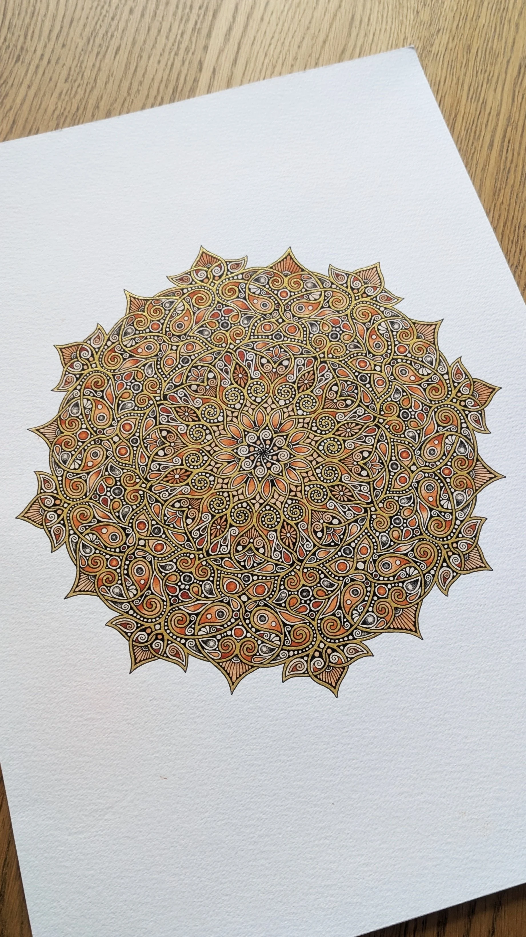 It's an A3 piece and is on 300gsm watercolour paper, made using fadeproof paints and metallic watercolour gold which catches the light so beautifully.